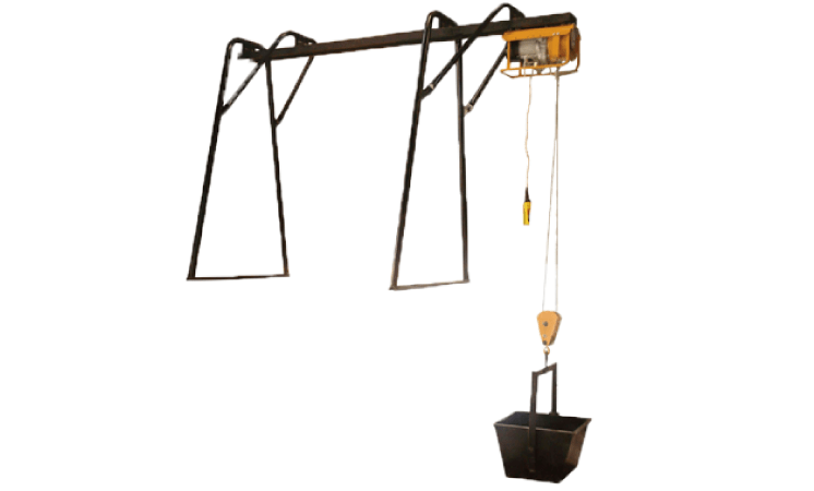 Electric hoists are complete with heavy-duty gantry and tilting bucket
