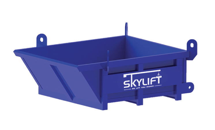 Skylift Material Skip Bucket is equipped with crane lugs to attach a 4-leg crane sling easily. Ranked as the most durable material skips n UAE, they are stackable, heavy-duty, and cost-effective, ideal for waste collection. It has plenty of capacity to handle any kind of trash or bulk materials. It is constructed of heavy steel and reinforced at all stress points to ensure long useful life. The waste collection bucket is designed to be hoisted with a set of 10 ft. or longer cable or strap slings. The sloped end makes it safe and easy to discharge the load. Skylift Material Skip Bucket is designed and manufactured according to the international standards.
